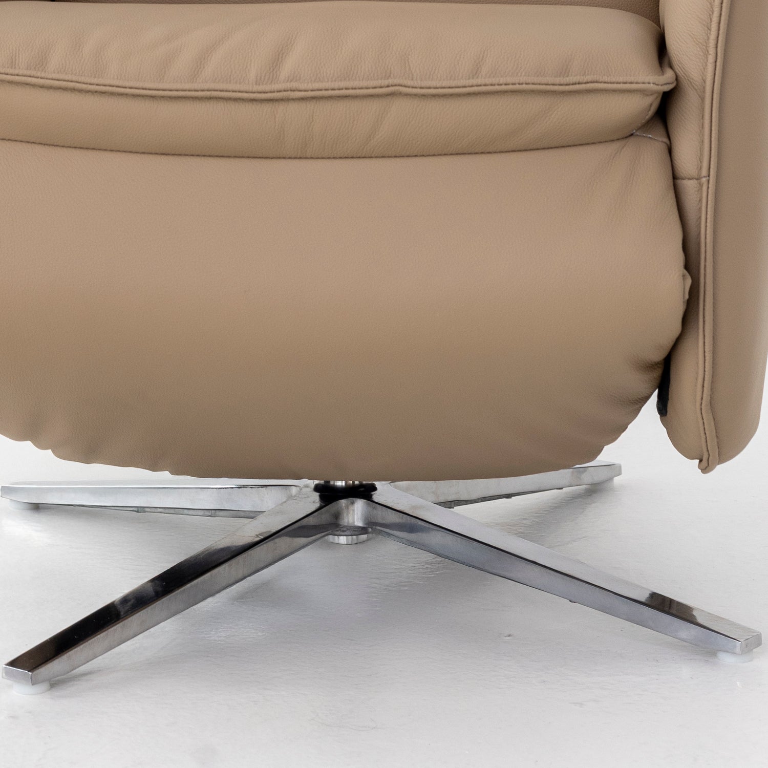 A estrutura da Grace conta com pés e base em metal, que oferecem estabilidade em todos os movimentos — ao sentar, girar ou reclinar. Essa construção sólida reduz balanços, distribui melhor as forças e aumenta a durabilidade mesmo no uso diário. Além disso, mantém a poltrona firme mesmo quando totalmente reclinada, transmitindo robustez e confiança em cada detalhe.