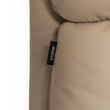 Na Grace, o revestimento é integral em couro, não apenas nos pontos de contato. Isso garante sofisticação em qualquer ângulo, toque agradável, fácil manutenção e alta durabilidade. O couro de qualidade preserva a elegância ao longo do tempo, valorizando o ambiente e reforçando a sensação de exclusividade a cada uso.